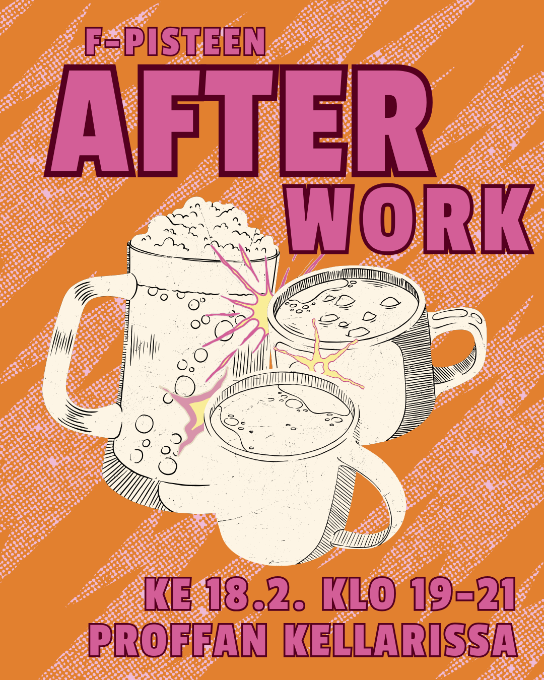 Tervetuloa F-pisteen Afterworkeille ensi viikon keskiviikkona 18.2. klo 19-21 Proffan kellarin yläkerran isoon kabinettiin. Afterworkeille ovat tervetulleita kaikki sukupuolentutkimuksen aiheista kiinnostuneet. Voit tulla piipahtamaan tai jäädä pidemmäksi aikaa hengailemaan ja vaihtamaan kuulumisia. Kyseessä siis pienen kynnyksen hengailu, jossa voit juoda kupposen kylmää tai kuumaa tai olla juomatta. Kabinettiin saa myös tuoda omia eväitä ja Proffassa on melko valikoima myös lautapelejä.